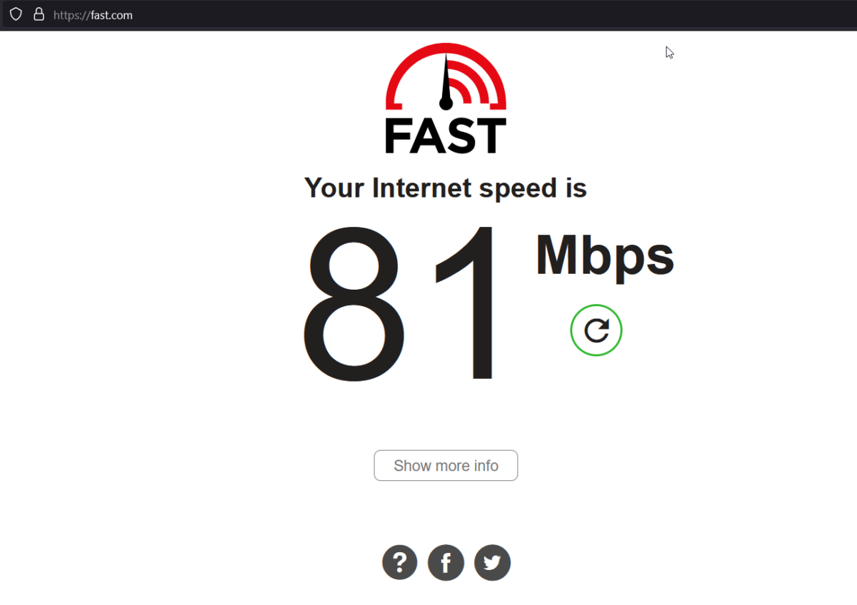 Подождите, пока обновление завершится и проверить скорость интернета. Перейдите к онлайн-проверке скорости, например Speedtest by Ookla or Fast.com. Проверьте пинг и скорость загрузки и скачивания.
