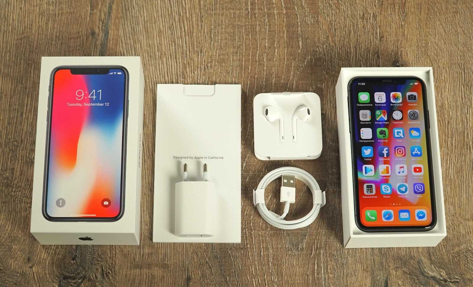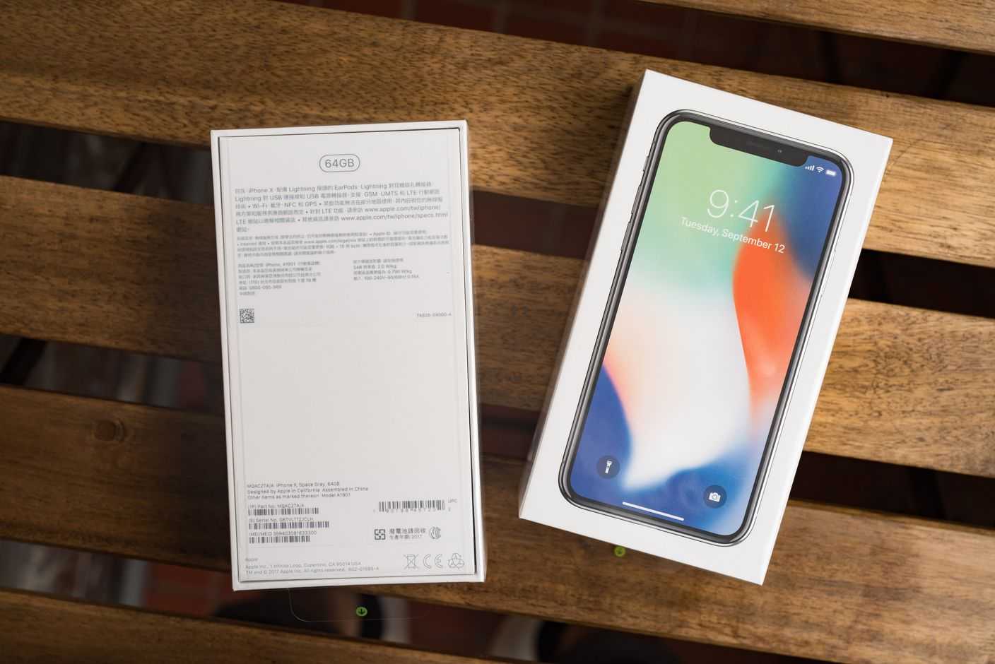 Упаковка гаджета выполнена в фирменном стиле и представляет собой небольшую прямоугольную коробку из плотного картона с глянцевым покрытием. На верхней части — фото смартфона. В комплекте с iPhone X будут: