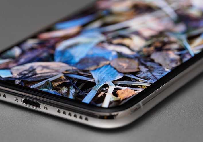Диагональ экрана iPhone 8 Plus составляет 5,5 дюйма, но это не делает iPhone X крупнее. Более длинное соотношение сторон означает, что экран занимает меньше места на корпусе. Поскольку смартфон более узкий, его удобнее держать в руке как телефон. Как и другие экраны OLED, этот обладает голубоватым оттенком, если смотреть на него под углом. Всё не так плохо, как на LG V30 и Pixel 2 XL, но избежать этого эффекта невозможно.