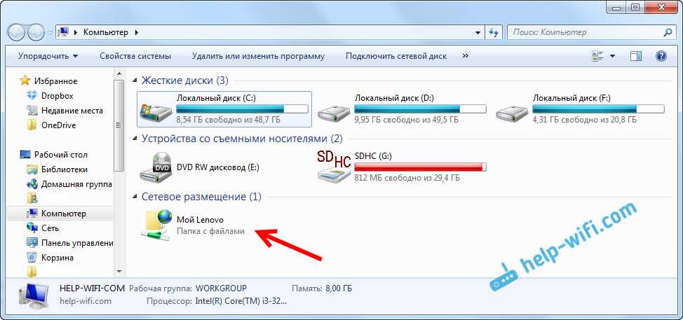 Этот способ будет работать только в том случае, если вы зарезервировали для своего мобильного устройства статический IP-адрес в настройках роутера. Зайдите в проводник («Мой компьютер»)
