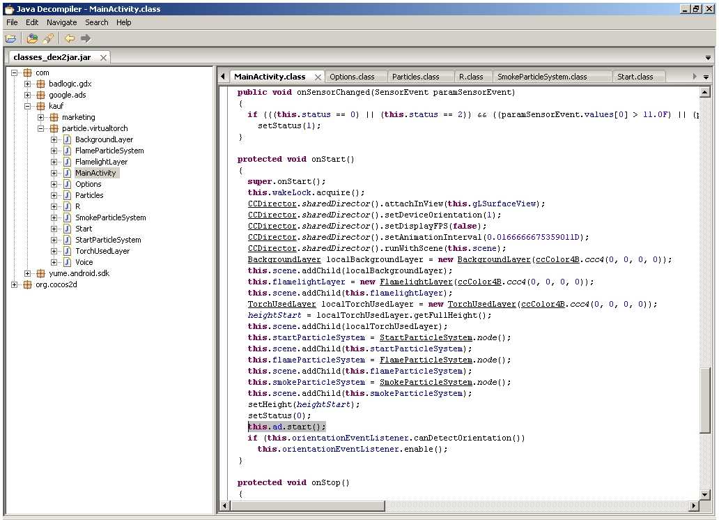 Теория — это, конечно, хорошо, но зачем она нужна, если мы не знаем, что делать с распакованным пакетом? Попробуем применить теорию с пользой для себя, а именно модифицируем какую-нибудь софтину так, чтобы она не показывала нам рекламу. Для примера пусть это будет Virtual Torch — виртуальный факел. Для нас эта софтина подойдет идеально, потому что она под завязку набита раздражающей рекламой и к тому же достаточно проста, чтобы не потеряться в дебрях кода.