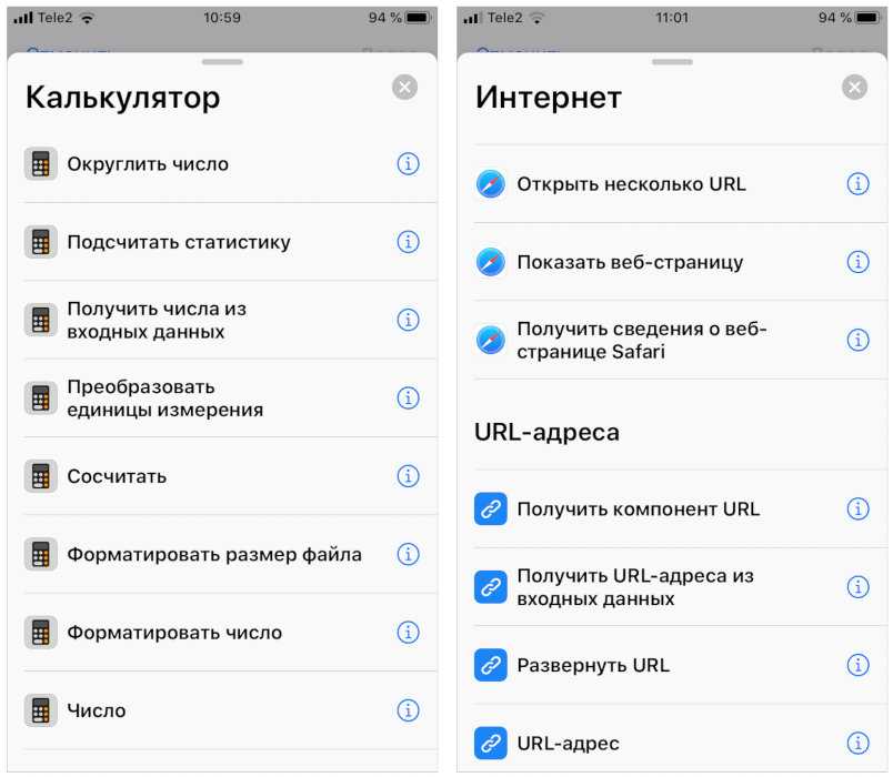 Интерфейс «Команд», судя по всему, разрабатывали инопланетяне, которых держат взаперти в подвалах кампуса Apple еще со времен старины Джобса. Но после небольшой практики привыкнуть к нему все-таки можно. Логика работы программы на первый взгляд очень проста: нужно указать действие, которое ты хочешь выполнить, а потом передать это действие в приложение и обработать полученный результат. Например, выбрав в списке приложений «Калькулятор», мы получим перечень возможных действий с ним — «Сосчитать», «Округлить число» и так далее. Для раздела «Интернет» действия будут иными: «Показать веб-страницу», «Открыть несколько URL», причем тут собраны варианты не только для Safari, но и для других приложений. Помедитировав с полчаса на этот список, можно даже отыскать в нем какую-то логику.