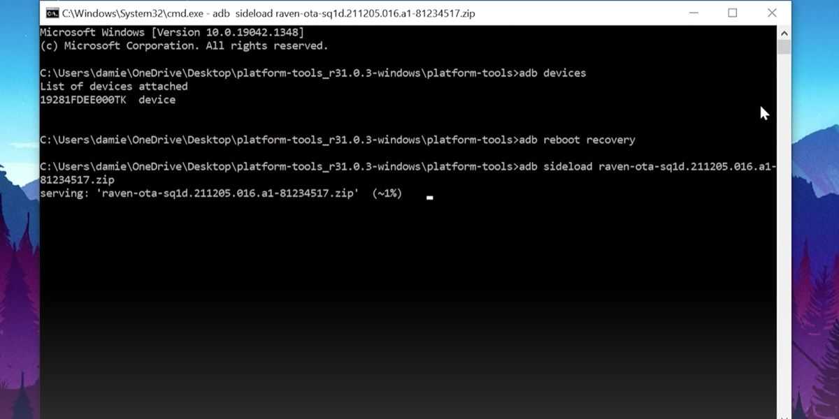 Далее вам нужно будет ввести точное имя файла OTA-обновления который вы загрузили из репозитория Google, и нажмите Enter, чтобы начать обновление вашего пикселя.