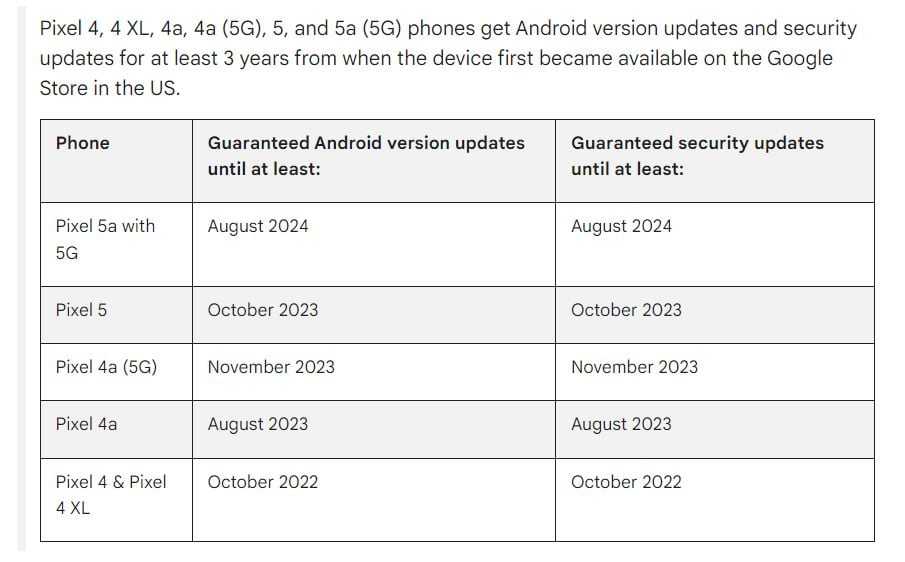 Android 13 также является последней основной версией операционной системы для Pixel 4 и 4XL. Google обязалась выпускать обновления для устройств в течение трех лет, и, согласно графику обновлений, гарантированные обновления безопасности закончились в октябре 2022 года.