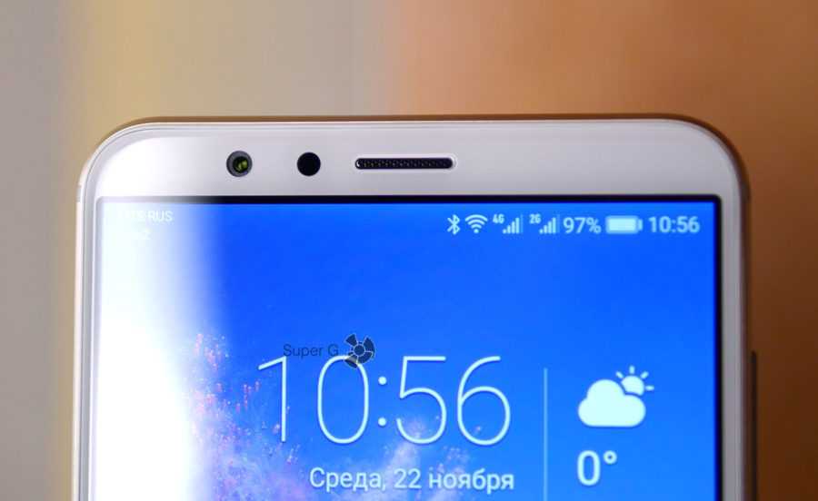 Что касается толщины рамок, то Honor 7X можно считать безрамочным, раз мы в эту касту относим сегодня все смартфоны, у которых чуть тоньше рамка сверху или экран с соотношением сторон 18:9. Но если серьезно, то рамки имеются. По краям они обычные, сверху и снизу весьма тонкие, относительно классических альтернатив. Площадь, занимаемая дисплеем, составляет чуть более 77% – хороший результат.