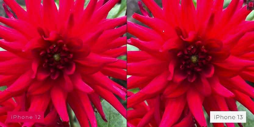 Изображения полностью идентичны. Исключением могут стать места с тенями – при сильном приближении на iPhone 13 меньше шума. Но для большинства пользователей все будет одинаково.