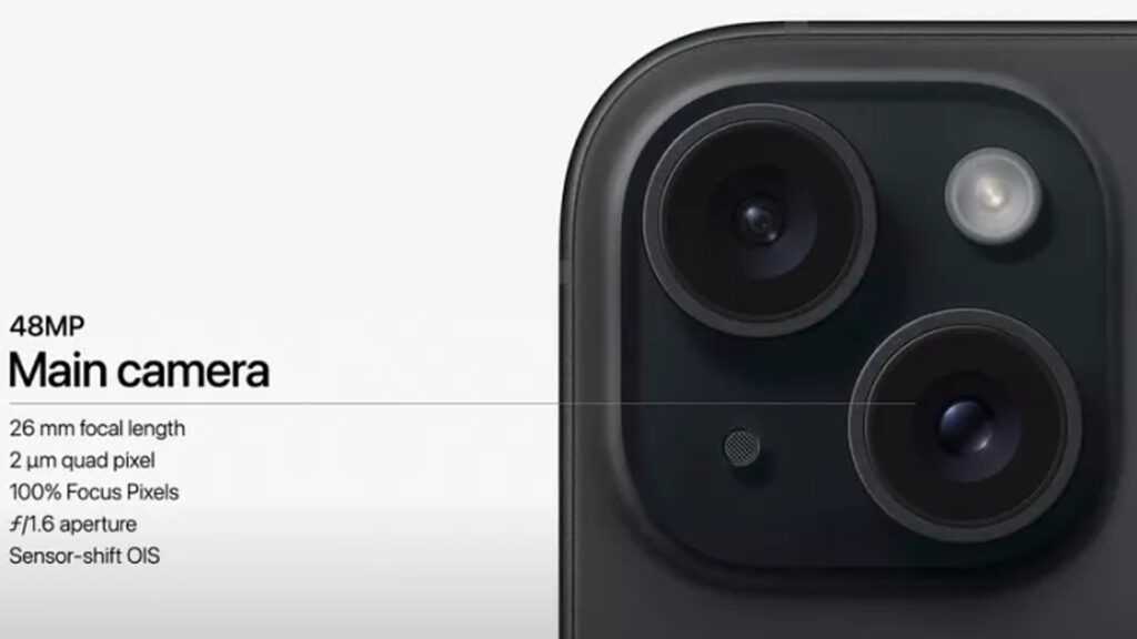 Стандартные модели iPhone 15 и iPhone Max получили основные 48-мегапиксельные камеры. Сенсор будет способен производить съемку в разрешении 12 мегапикселей в стандартном режиме или 48 мегапикселей в профессиональном режиме. Смартфон получил режимы зума 0,5х, 1х и 2х.