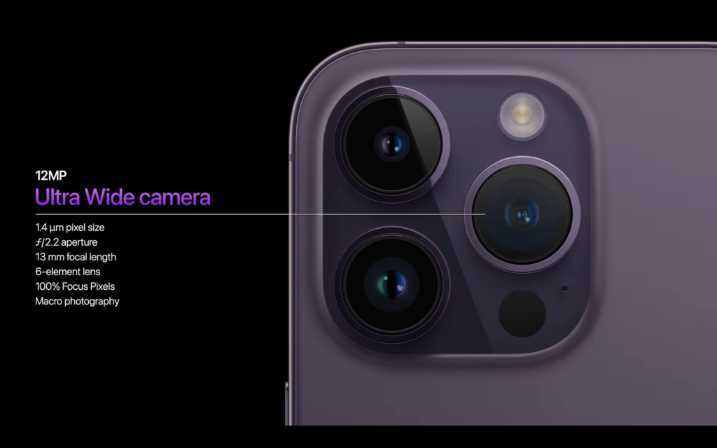 Основной датчик в iPhone 14 Pro, по данным Apple, на 65% больше, чем в iPhone 13 Pro, и содержит так много пикселей, что Apple добавила дополнительную опцию 2-кратного телеобъектива наряду с опцией 3-кратного, которая была там ранее.