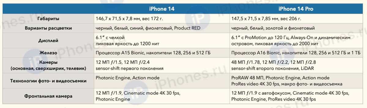 Процессор, накопитель и оперативная память в iPhone 14 Pro и iPhone 14 Pro Max