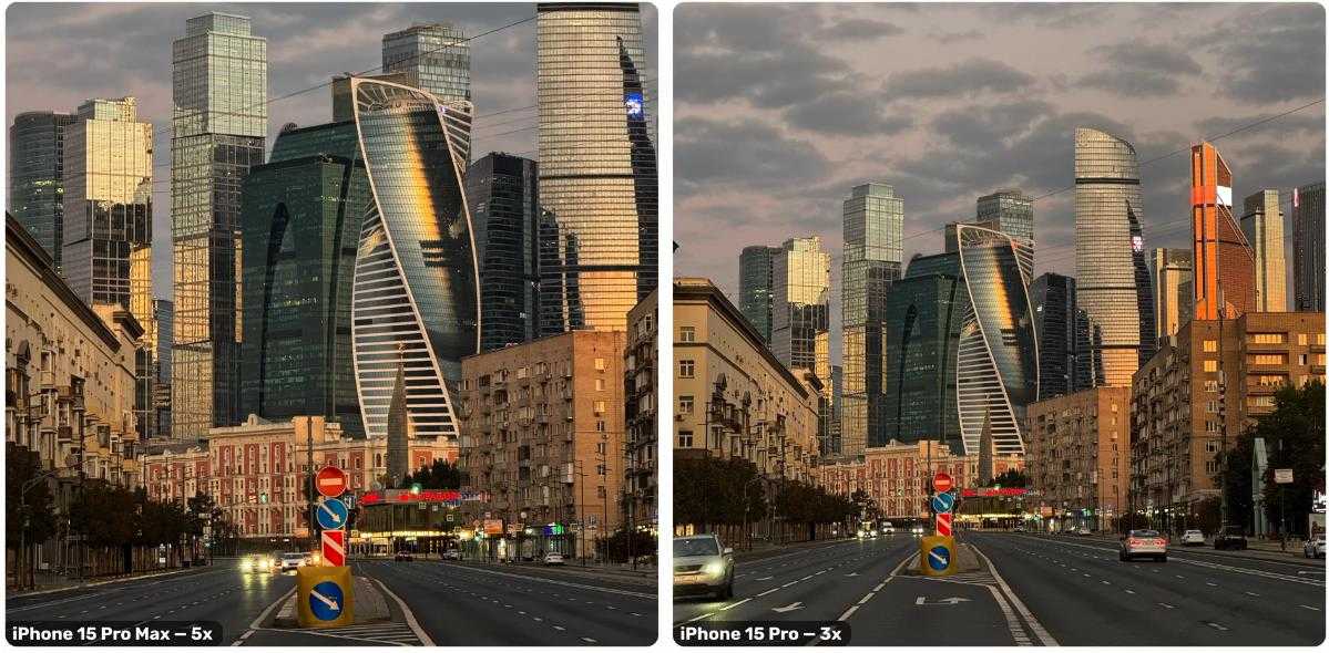 Есть 2х зум на удаление при переходе на широкий угол, 2х зум за счет кропа фото с 48-мегапиксельного модуля и 3х зум за счет телеобъектива. В модели iPhone 15 Pro Max телевик отличается от обычной «прошки», там новая система линз, которая дает 5х зум. Разумеется в смартфонах есть LiDAR.
