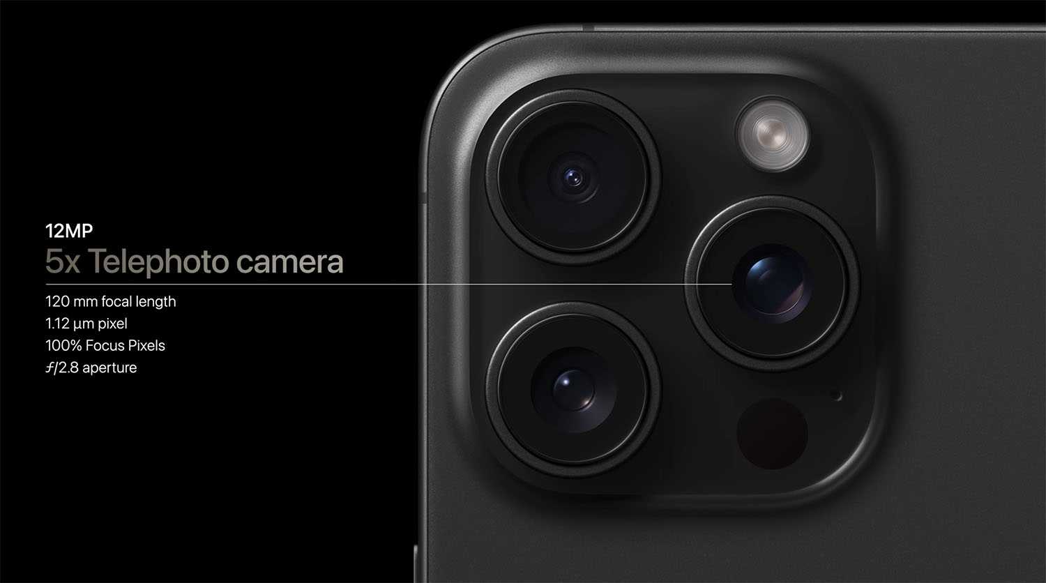 В модели iPhone 15 Pro Max используется линза 5X. Такое фокусное расстояние реализовано не с помощью линзы перископа, как в других смартфонах, а с помощью тетрапризмы, где свет отражается 4 раза, и увеличенного сенсора с полным покрытием фокус пикселей и 3D стабилизацией, которая двигает сенсор вообще во все стороны.