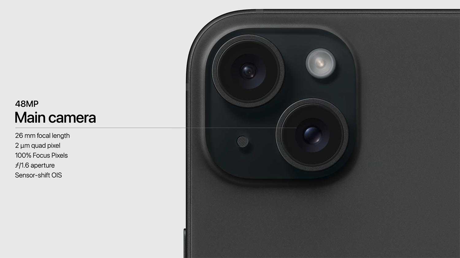 Блок основных камер в iPhone 15 и iPhone 15 Plus