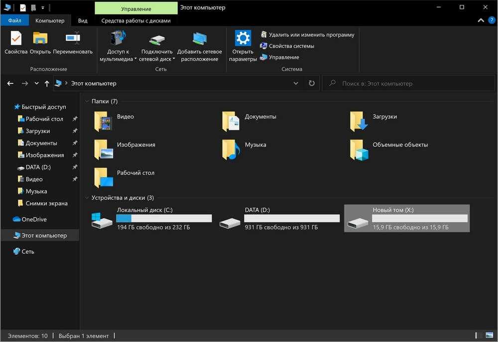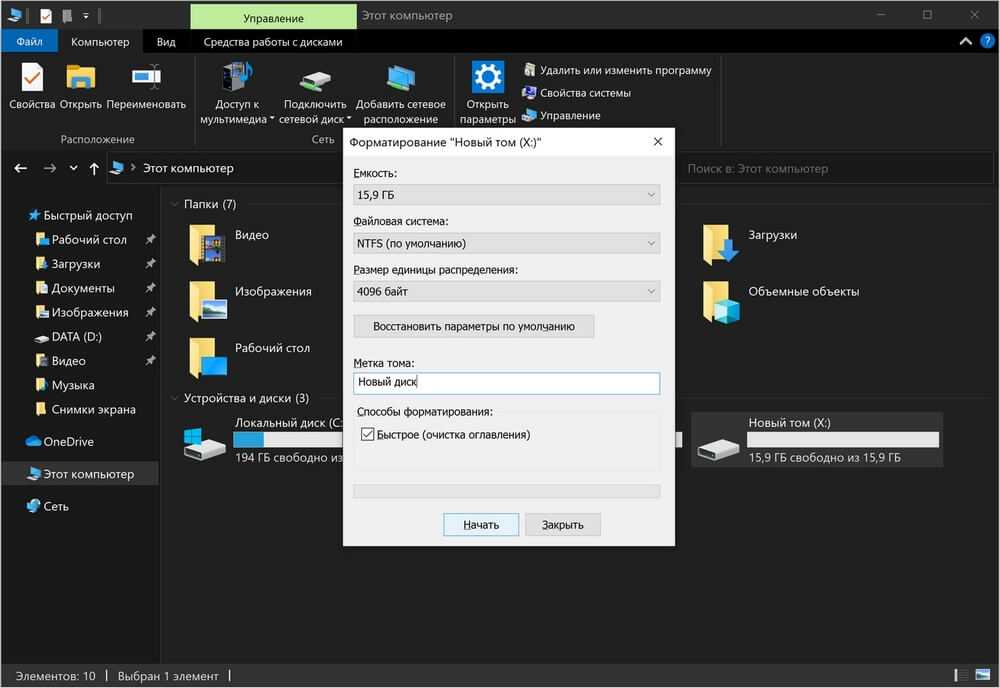 Если все прошло успешно, только что отформатированная флешка отобразится в “Проводнике”.