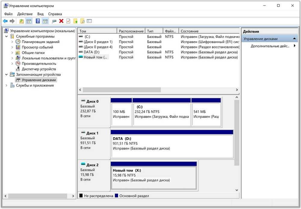 В Windows 10 достаточно кликнуть правой кнопкой мыши на кнопке «Пуск» и выбрать пункт «Управление дисками».