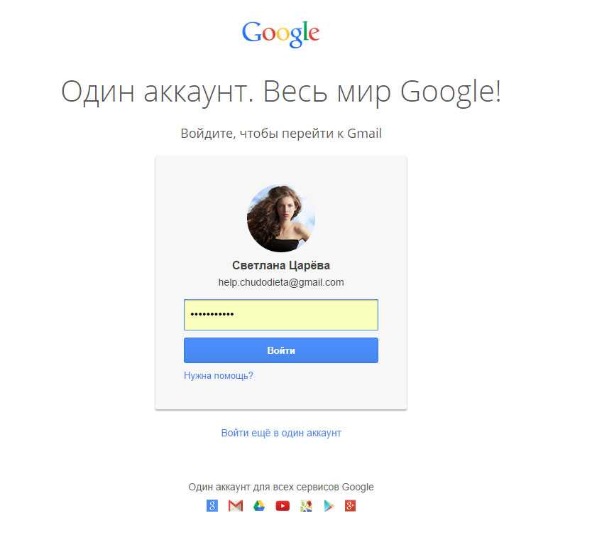 — если варианты выше не подходят, вам нужно узнать имя этого google аккаунта (посмотреть можно многими способами, например войдя с телефона в приложение Gmail, — вас интересует адрес почтового ящика), зайти в gmail.com с компьютера и запросить восстановление пароля при входе в аккаунт, для этого нажмите ссылку «Нужна помощь?»