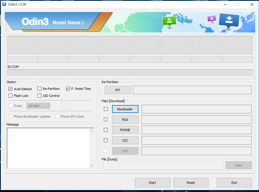 - Запустите Odin, подключите телефон к компьютеру и войдите в режим Recovery.