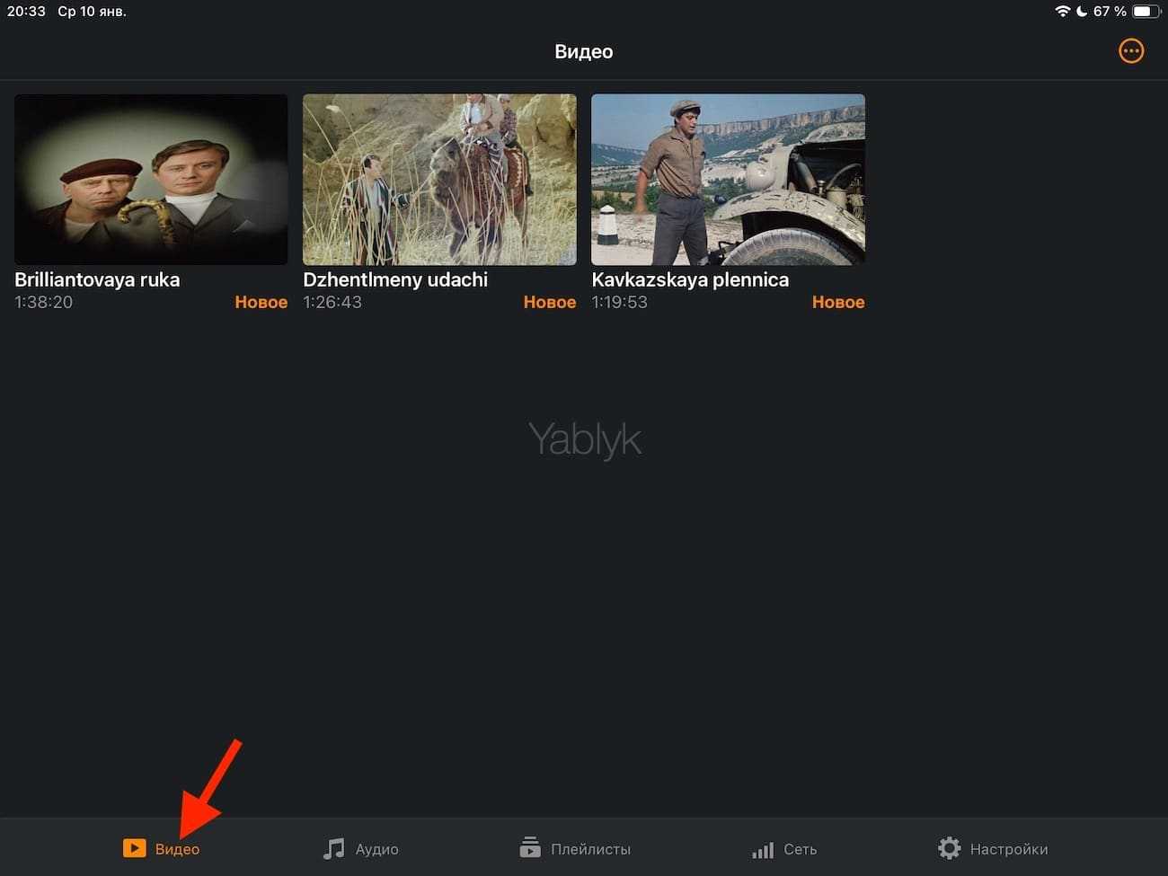 Вот добавленные видео на iPad в приложении VLC.