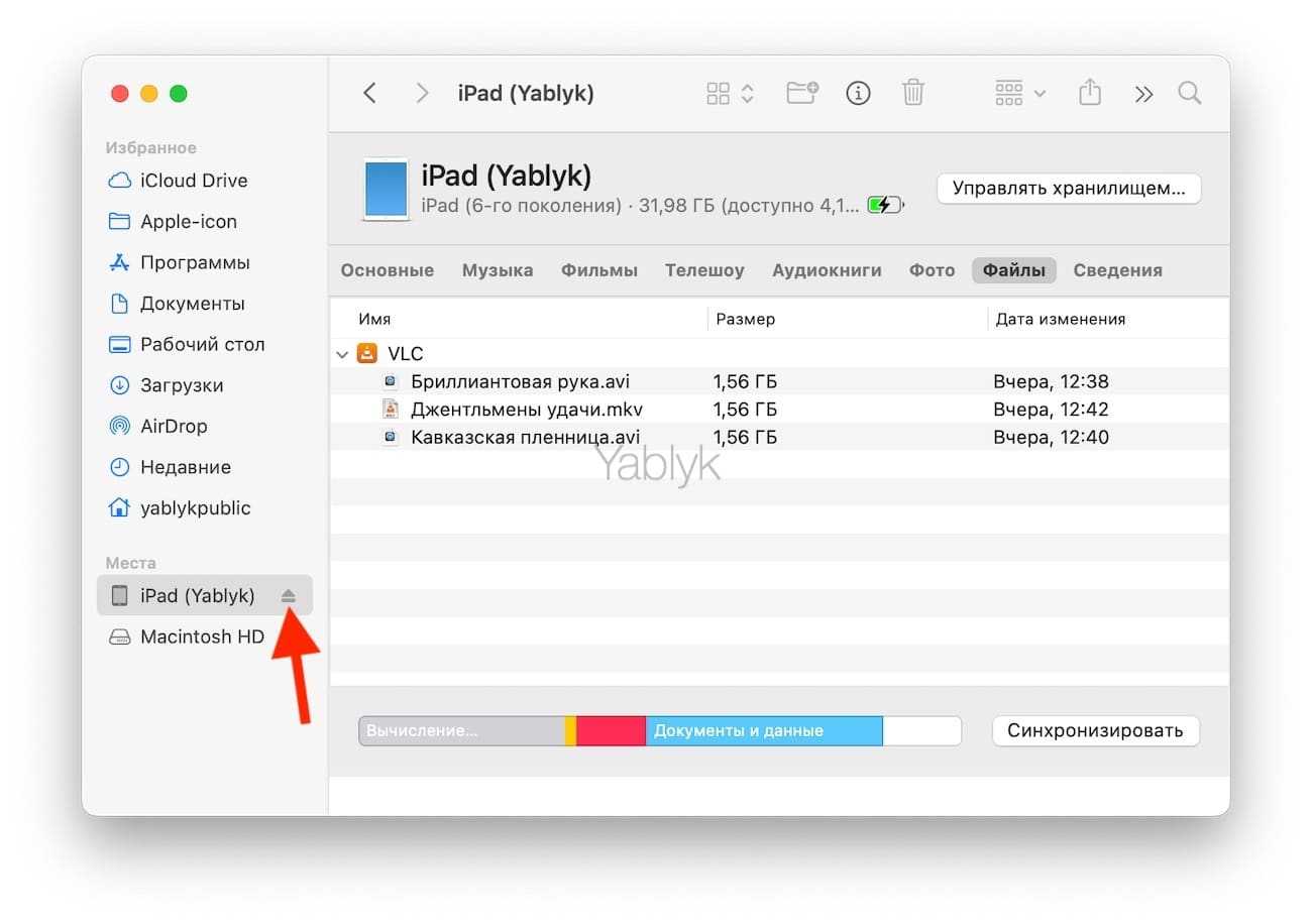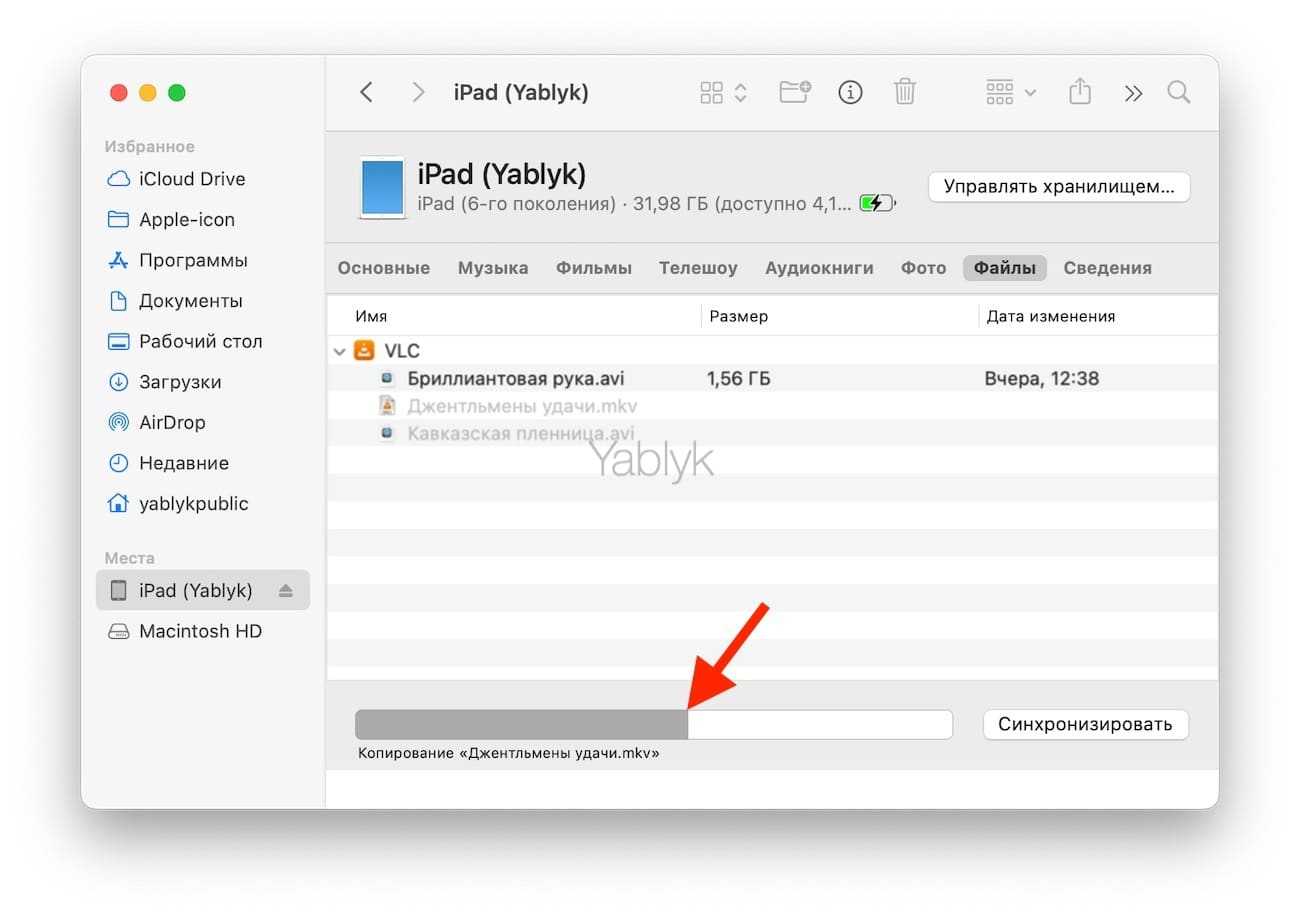 Как только фильм загрузится, можно подключить Айфон к компьютеру с помощью USB-кабеля или через Wi-Fi и просто синхронизировать файлы — через несколько минут видео окажется на iPad.