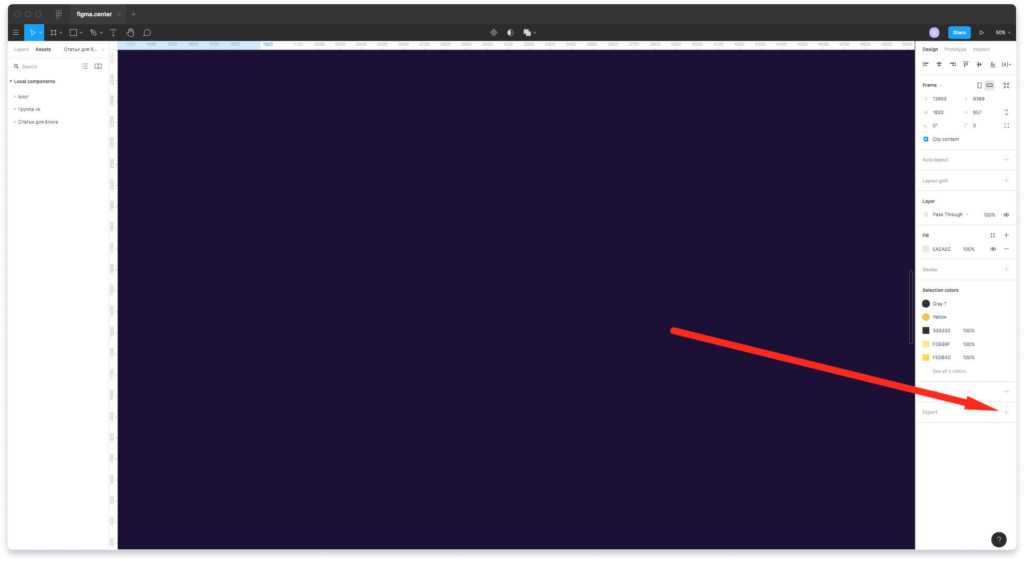 Важное примечание: в этом случае ничего не нужно выделять. Экспортируются все созданные вами ранее фреймы в вашем из вашего проекта