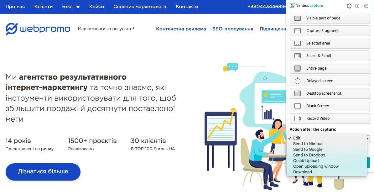 Nimbus Screenshot & Screen Video Recorder — еще один популярный инструмент с возможностью делать скриншоты веб-страниц полностью, только их видимой части или отдельных нужных фрагментов. Также есть опции внесения нужных меток, стикеров, базовых корректировок в снимки. Главное преимущество Nimbus — функция записи экрана, персональных видео с веб-камерой в форматах HD, FullHD и даже 4K. Во время съемки в режиме реального времени можно добавлять графические элементы и надписи. Все материалы хранятся на Google Drive.