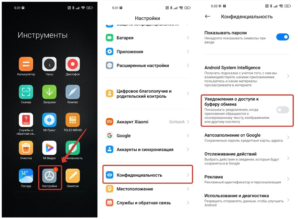 Чтобы включить уведомления буфера обмена, перейдите к «Настройки» > «Безопасность и конфиденциальность» > «Конфиденциальность». Затем активируйте уведомления при доступе к буферу обмена.