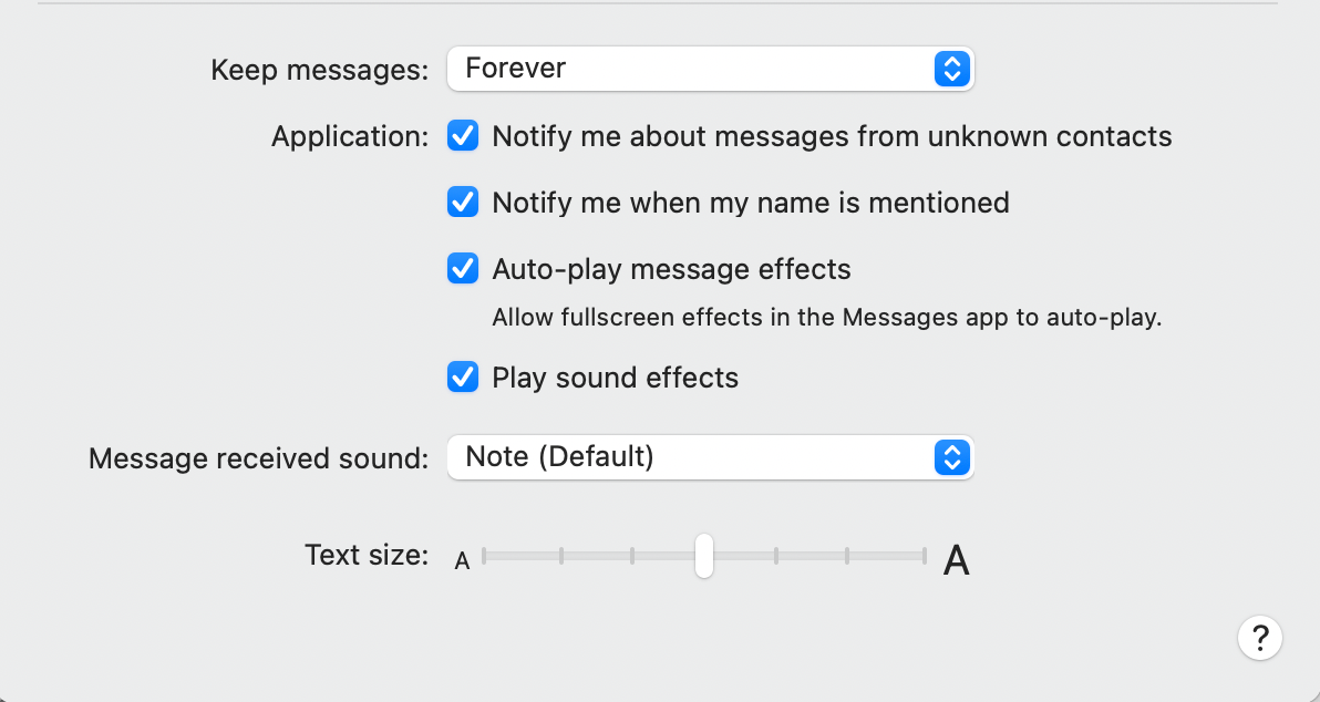 Если вы отправляете сообщения через Mac и хотите, чтобы текст был больше, перейдите в « Сообщения» > « Настройки» и перетащите ползунок « Размер текста» .