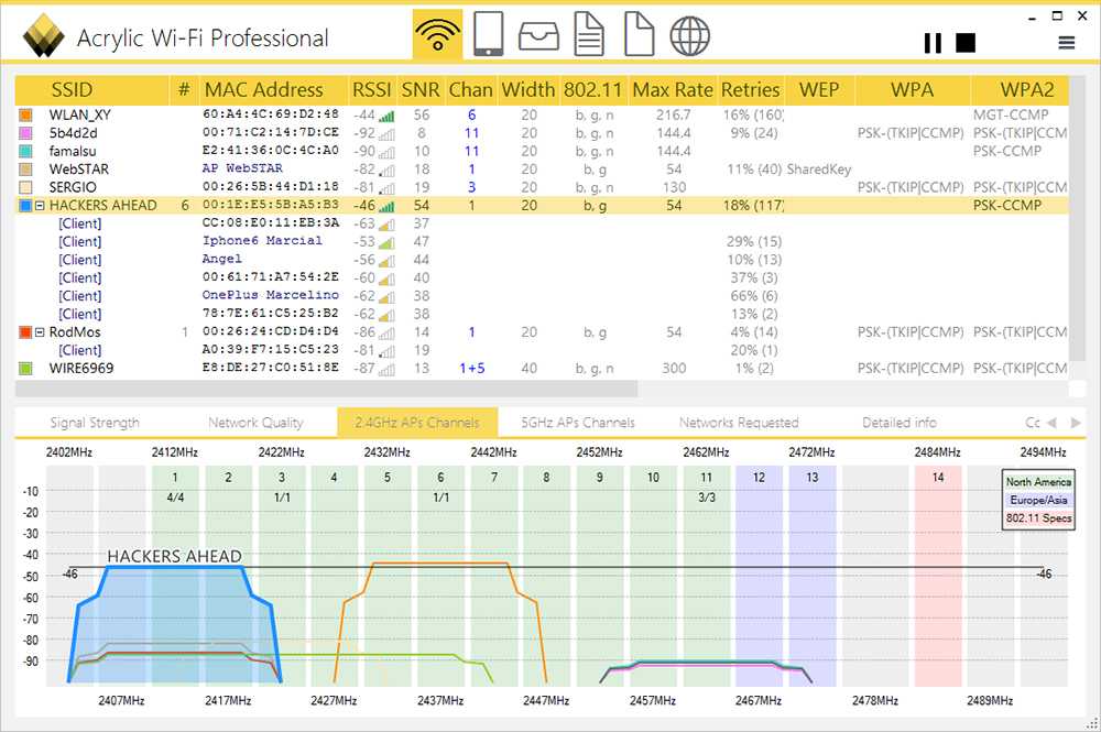 Для проверки используемого канала можно воспользоваться простой, но эффективной утилитой под названием Acrylic.