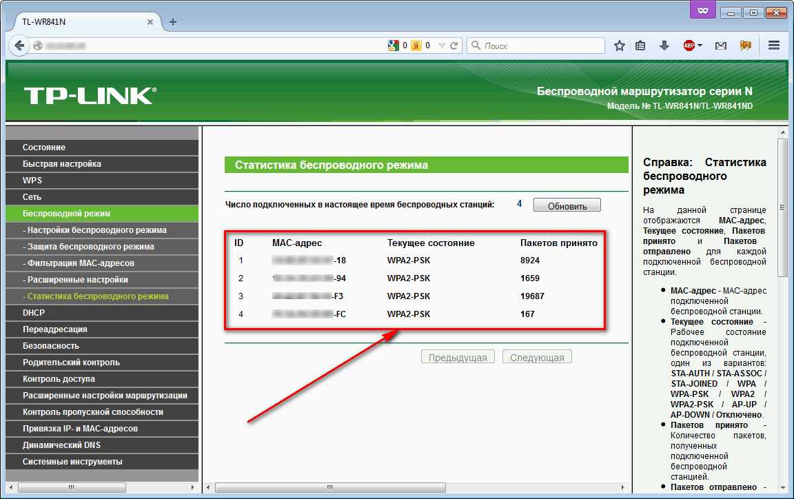 - Находят раздел управлением беспроводного режима, и знакомятся со списком устройств, подключенных к сети.