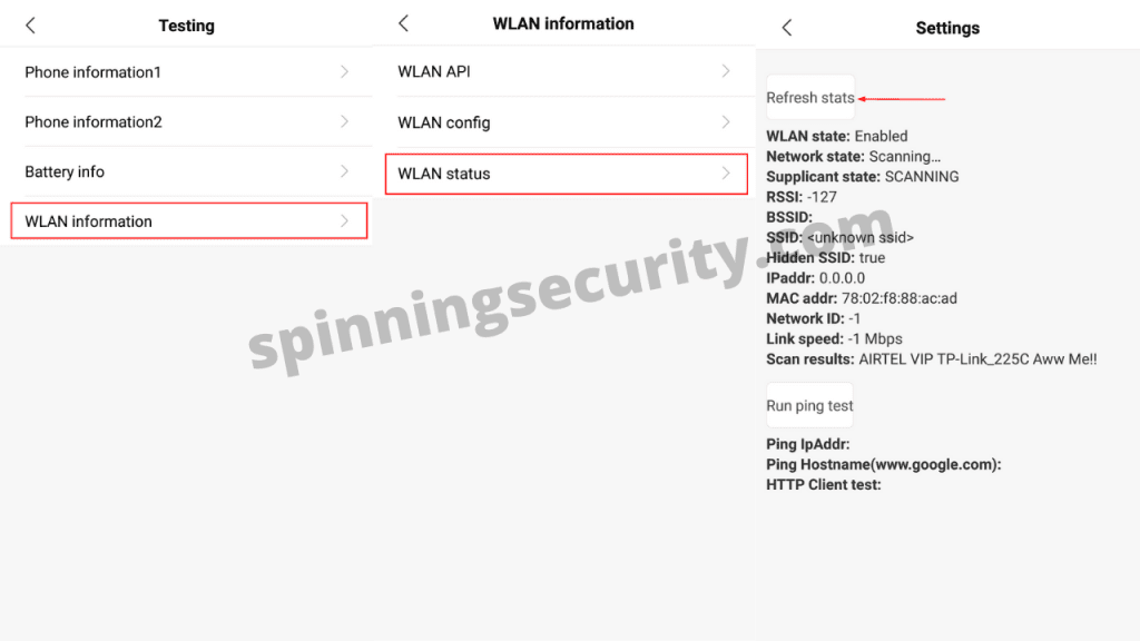 - Here we will select WLAN information. (Select according to your option)