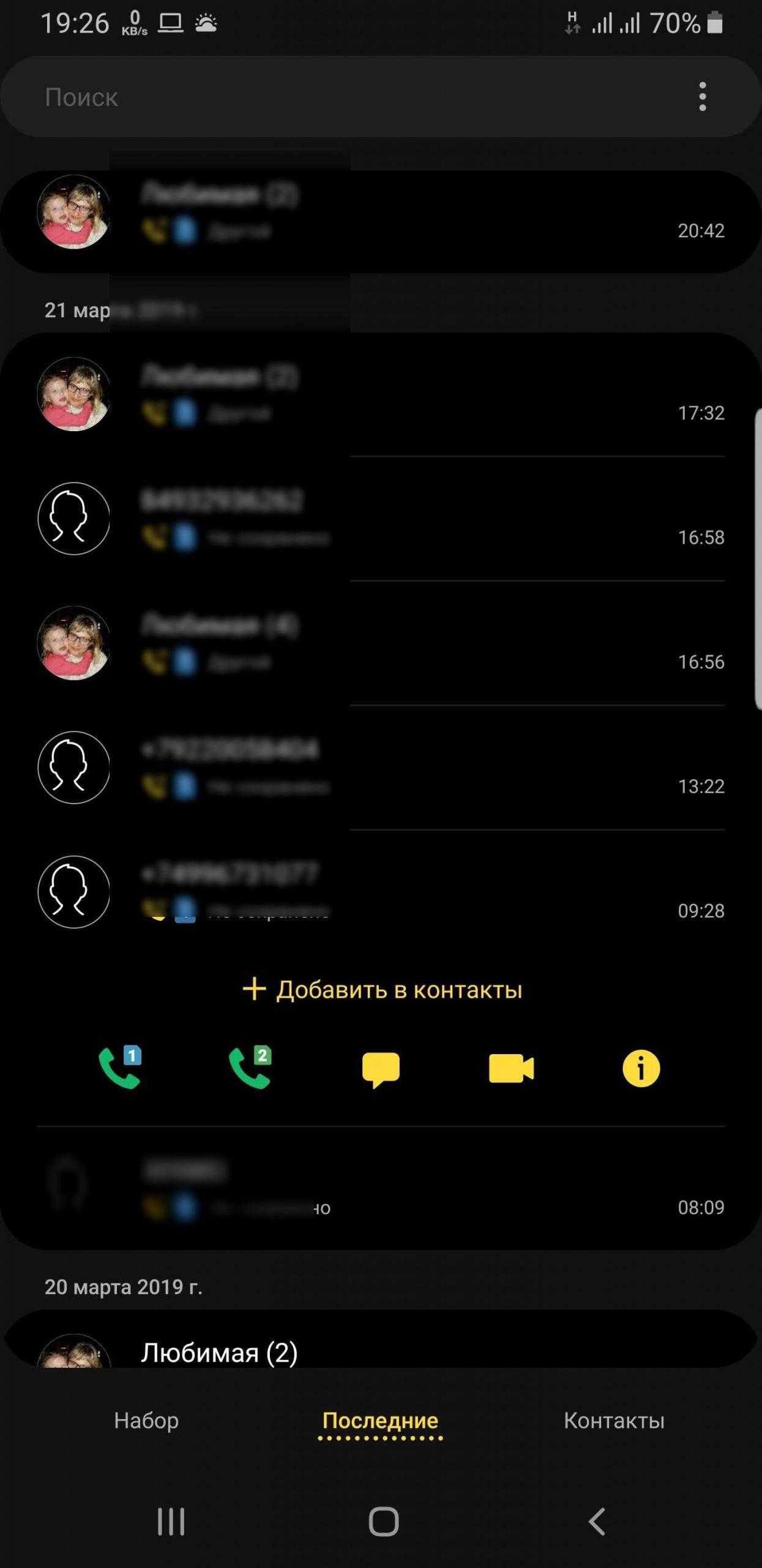 Черный список на устройствах Samsung тоже находится в приложении «Телефон», однако названия некоторых пунктов меню отличаются: