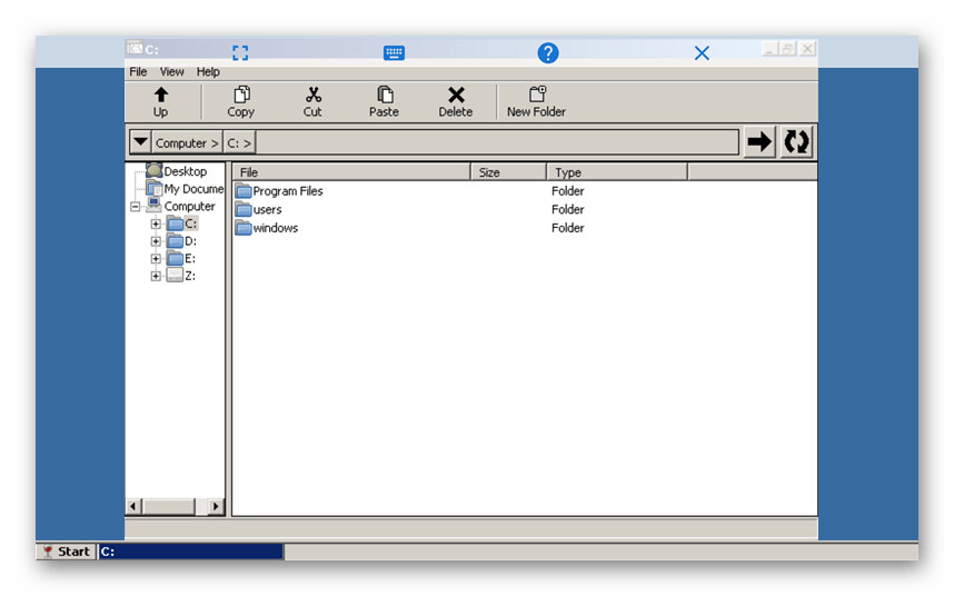 «QEMU» относится к одним из быстродействующих эмуляторов Виндовс для Android, однако с ним иногда случаются сбои. Утилита загружает интерфейс Виндовс 95 либо 98.