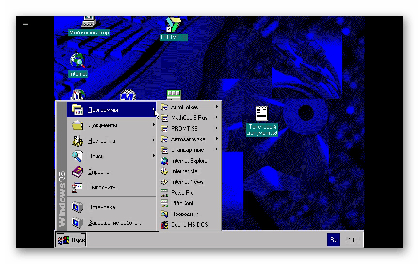 Примечание: виндовс 95 по сравнению с 98 версией функционирует надежнее и стабильнее.