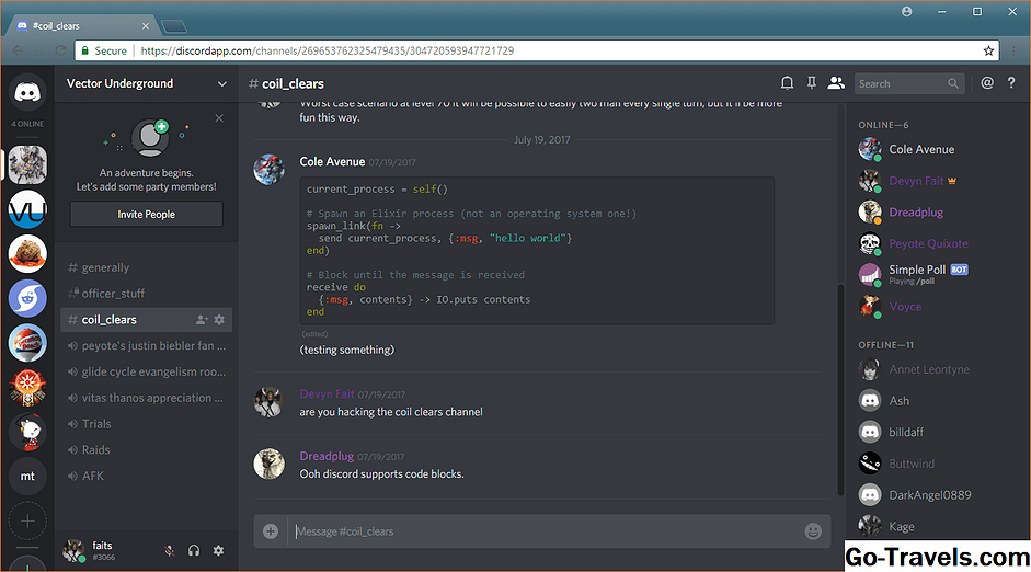 Discord предлагает как частные, так и общедоступные серверы. Частные серверы предназначены для общения с крутыми друзьями, а не для незнакомцев, которым не терпится кричать на вас. Они также подходят для любого вида общения, требующего секретности. Для предварительного просмотра Minecraft Dungeons я смотрел презентацию и задавал вопросы разработчикам через защищенный паролем частный сервер Discord.