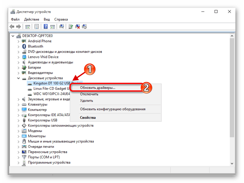 Еще одна распространенная причина, почему флеш-накопитель не отображается в меню компьютера – отсутствие драйверов или использование устаревшего ПО. Как правило, после подключения флешки к ПК программное обеспечение, необходимое для работы переносного хранилища, устанавливается автоматически. При этом даже не обязательно иметь доступ к интернету. Впрочем, всегда есть исключения, в связи с чем рекомендуется принудительно загрузить драйверы с официального сайта производителя флешки.