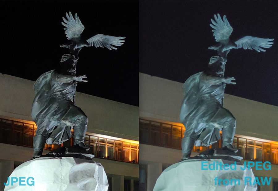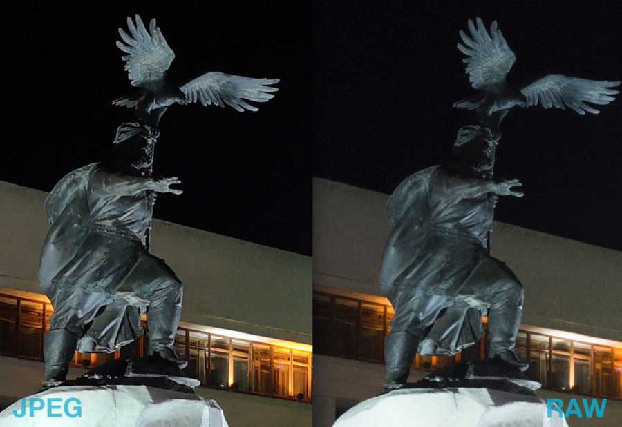Аппарат умеет снимать в RAW (только в режиме «Профи») и делает это очень хорошо. Вот пара примеров снимков, первый из которых снят на автомате сразу в JPEG, а второй проявлен из RAW-формата (.DNG в данном случай):