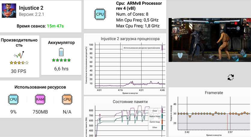 Показатели в бенчмарках не такие сумасшедшие, как у смартфонов на базе Snapdragon 845, но в реальной жизни производительности хватает для всего. Потоковое видео с YouTube, веб-серфинг и мессенджеры вообще не представляют серьёзной нагрузки для современного флагмана. Тяжёлые игры и приложения тоже не спешат выгружаться из памяти. Вполне можно отвлечься от Injustice 2 на соцсети, а через 10 минут вернуться к виртуальным дракам без утомительных загрузочных экранов и потери игрового прогресса.