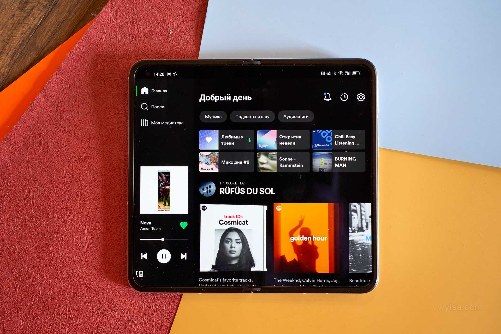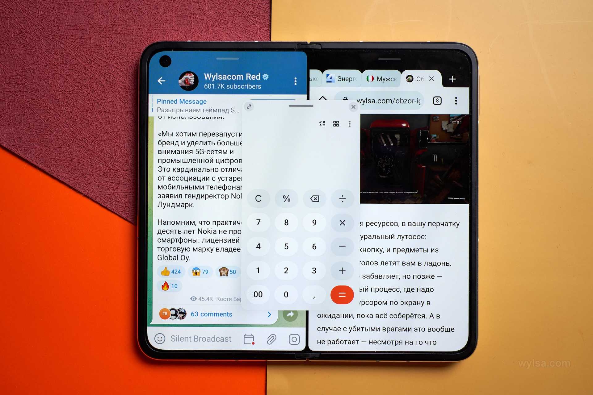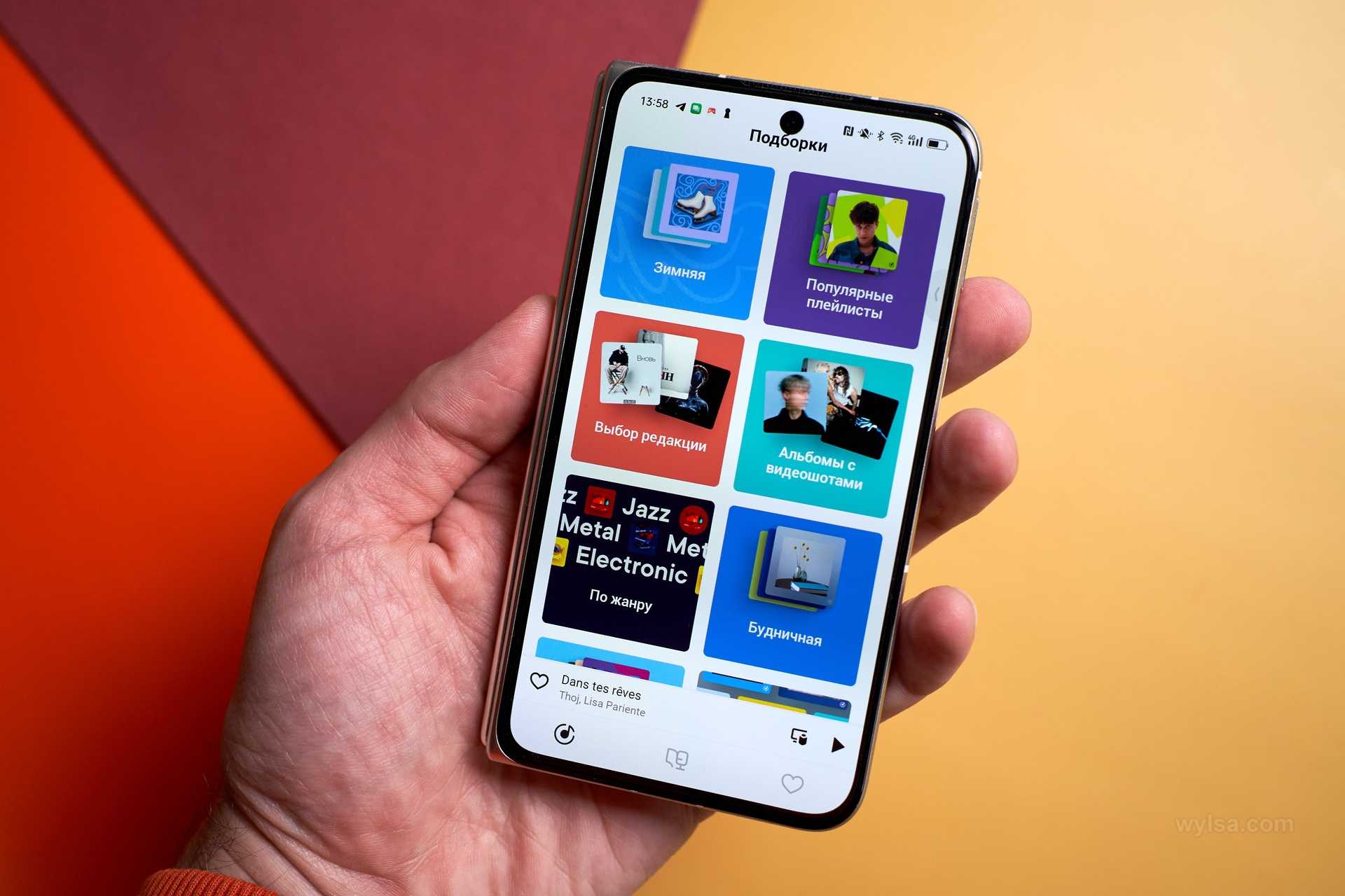 Оба экрана отличного качества: яркие, сочные, с поддержкой 120 Гц. Изображение отличное, дисплеи что надо — всё на уровне. На большом дисплее удобно читать, рассматривать фотографии, играть или смотреть видео. С кино, конечно, есть неприятный нюанс в виде неизбежных чёрных полос во время просмотра. Но это уже не проблема смартфона, а особенность всех дисплеев такого формата.