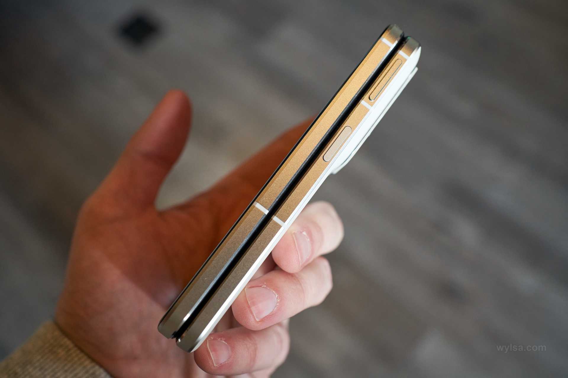 Отлично сделан и шарнир: он плотно фиксирует смартфон в удобном положении. Можно повернуть дисплей на 90°, а можно на 180° или выбрать любой промежуточный вариант. Заявлено, что он выдерживает 400 000 раскрытий, но я не проверял на прочность.