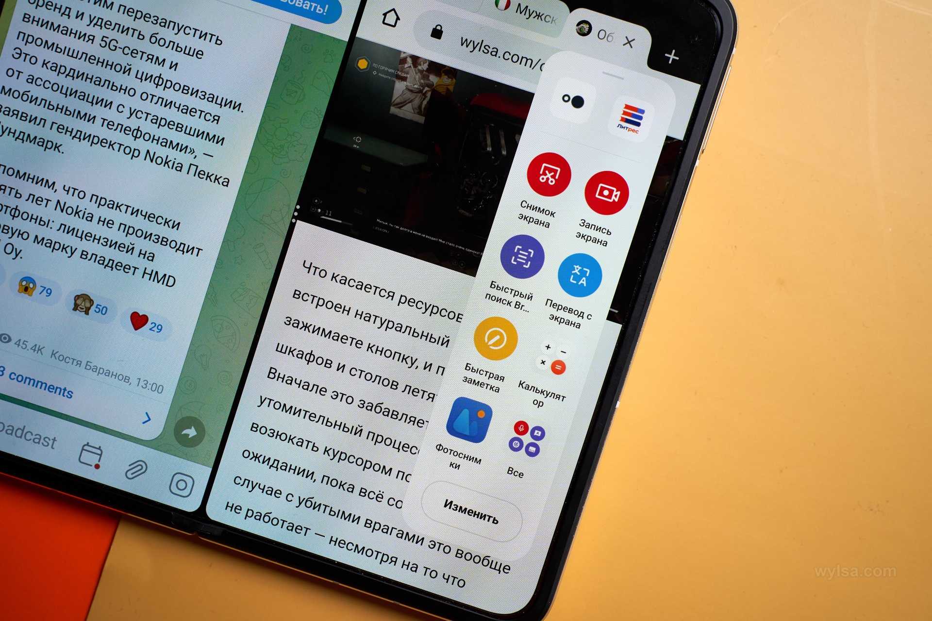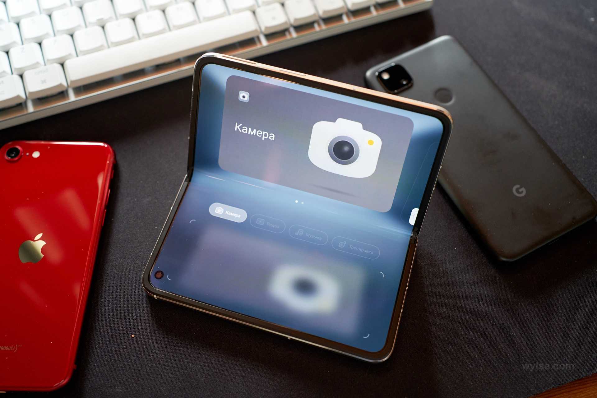 Если придать смартфону Г-образное положение, тогда экран делится на две половинки. Верхняя часть используется под медиа: например, там отображается видео или видоискатель камеры. А в нижней части будут расположены элементы управления. Увы, но таких программ совсем мало, а популярные сервисы вроде YouTube пользоваться этим преимуществом не обучены. А так было бы удобно: с одной стороны видео, с другой — комментарии.
