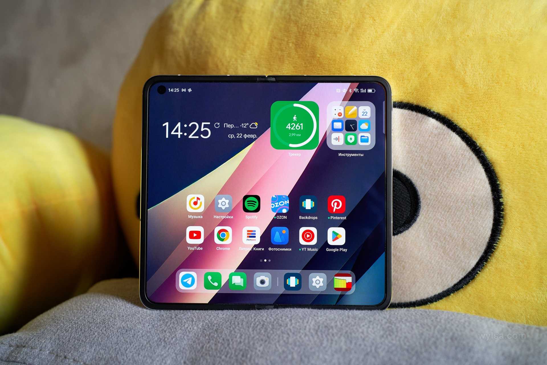У OPPO Find N2 удобно расположена клавиша питания, на неё точно ложится большой палец правой руки. В неё же вписан и сканер отпечатков, он реагирует молниеносно. Я заодно добавил лицо для ускоренной разблокировки. Телефон настолько стремительно меня распознаёт, что иногда это даже неудобно. Достаёшь его из кармана, чтобы посмотреть название песни, которая звучит в наушниках, а он уже самостоятельно разблокируется, открывая главный экран, где никого плеера нет. В итоге я разблокировку по лицу вообще выключил.