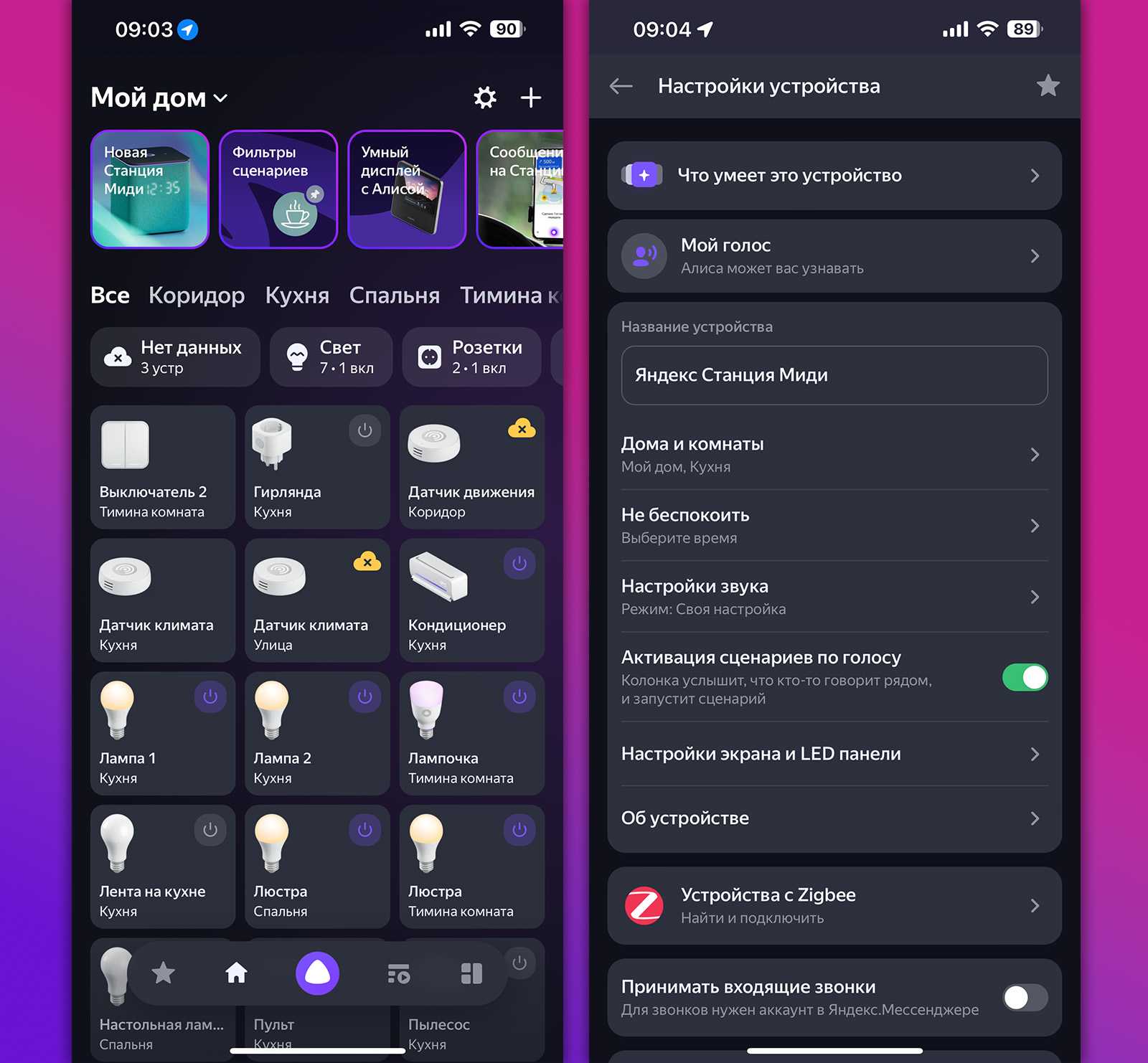 Станция Миди распознаёт команды умного дома БЕЗ ИНТЕРНЕТА. Скажу прямо – это киллер-фича. По сей день так могли делать только колонки от Apple. Остальные отправляют вашу команду вначале на удалённый сервер, ждёт оттуда ответа, получает его и только потом исполняет. Теперь же вы можете пользоваться привычными командами без сети, ситуативно или нарочно.
