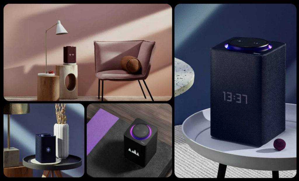 В жёстком корпусе, выполненном из пластика, присутствует компактный динамик. Его мощности достаточно, чтобы прослушать аудиозапись, музыку или текст. Мощность динамика составляет 3 Вт. Дополнительно имеются 4 микрофона. С их помощью можно общаться с ассистентом, задавать вопросы и отдавать команды.