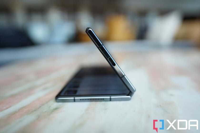 Шарнир кажется прочным и не выступает сбоку при складывании, как это было в Samsung Galaxy Z Fold 1–3, но есть один очевидный недостаток: он не может удерживать смартфон в промежутке между полностью сложенным и полностью разложенным состояниями — иными словами, смартфон не получится разложить в форме буквы «Г», чтобы он напоминал открытый ноутбук.