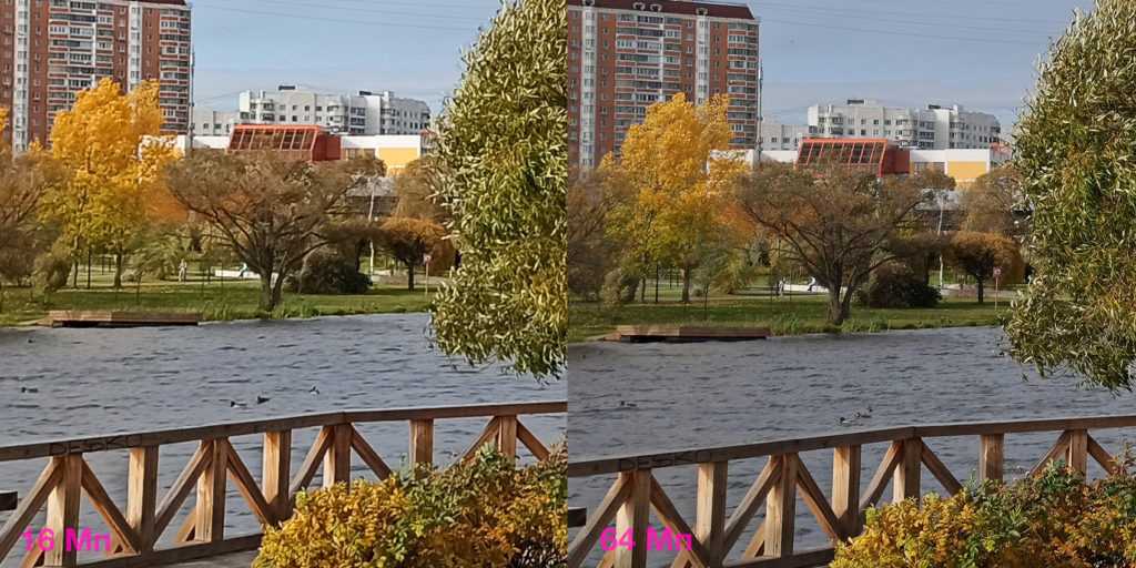 Здесь используется сенсор Samsung ISOCELL Bright GW1 — индекс модели S5KGW1. Это чудо вмещает на матрице огромной диагонали (1/1.72 дюйма) 64 миллиона пикселей, каждый из которых размером 0,8 микрометра. При этом они умеют объединяться в более крупные по 1,6 мкм. В таком случае разрешение падает до 16 Мп и становятся доступны дополнительные опции: работает зум, AI-улучшалки, ночной режим и т.д. Однако я бы рекомендовал забить на всю эту шелуху и ВСЕГДА использовать 64 Мп режим. Сейчас пойдут примеры, всё станет понятно.