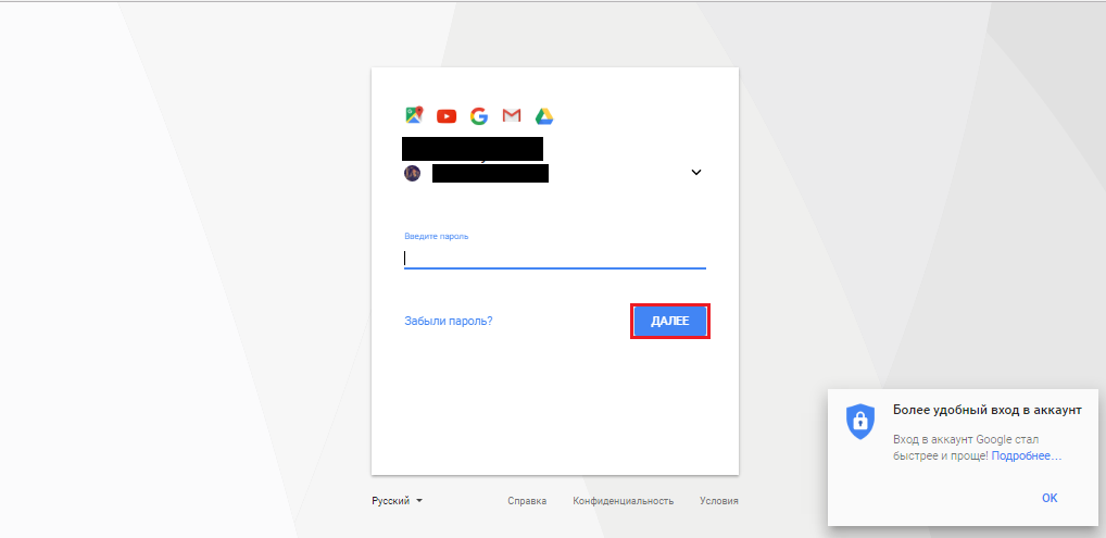Шаг 1. Перейдите на официальную страницу приложения в Google Play по этой ссылке. В верхнем правом углу нажмите «Войти» и введите логин и пароль своего аккаунта Google для входа в учётную запись и нажмите «Далее».
