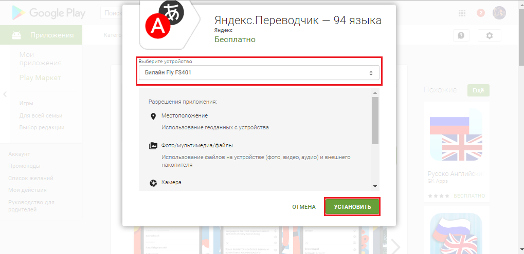 Владельцы смартфонов и планшетов с операционной системой Android привыкли скачивать и устанавливать различный контент напрямую через приложение Play Market. Однако многие до сих пор даже не подозревают, что в Android существует возможность установить любое приложение на мобильное устройство удалённо. Попробуем для примера установить на свой смартфон приложение «Яндекс.Переводчик» через компьютер. Для этого проделайте следующие шаги: