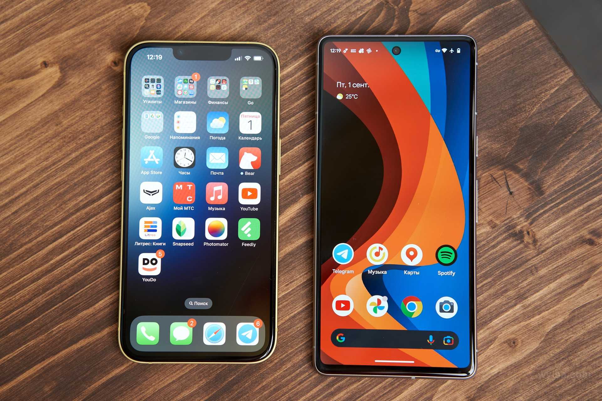 Ещё у Pixel 7 дисплей с плавными закруглениями по краям, а у iPhone он плоский, поэтому на нём лучше сидят защитные стёкла. Зато у Pixel чуть больше диагональ: 6,3 дюйма против 6,1 в iPhone.