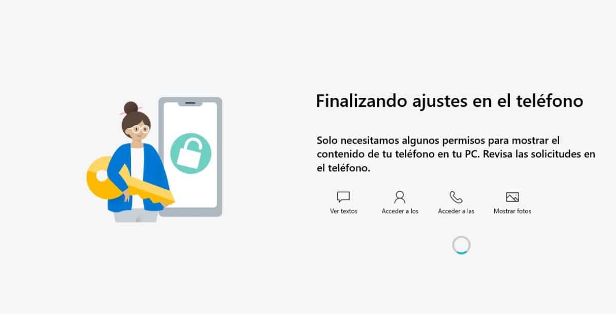 Как только мы запустим приложение Windows в первый раз, оно предложит нам перейти на наш смартфон, чтобы дать ему необходимые разрешения, чтобы иметь возможность доступ к уведомлениям, текстовым сообщениям, альбому и списку вызовов.