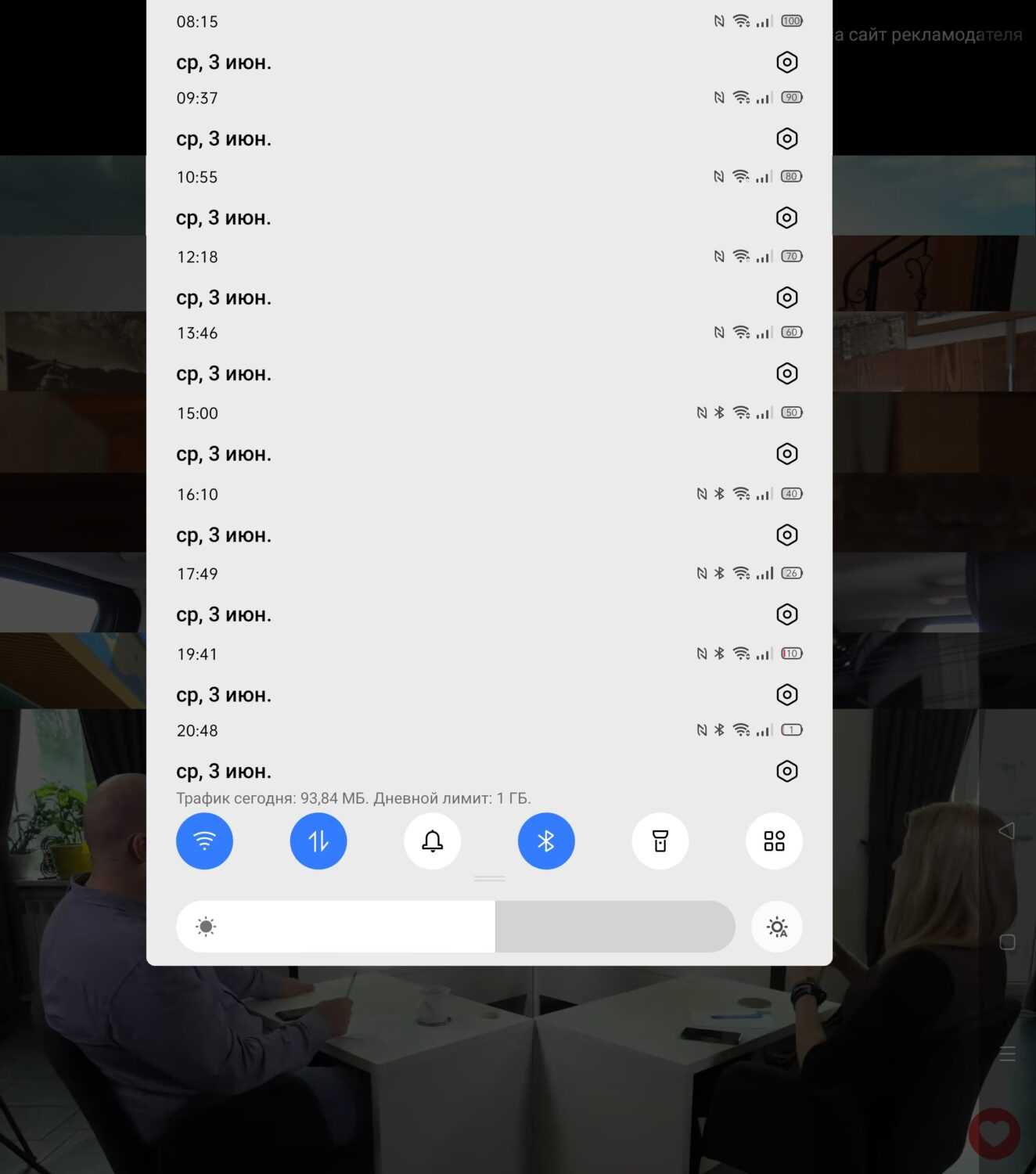 Но перейдем к более практичным тестам. YouTube запущен в 8:15, яркость на среднем уровне, авторегулировка отключена. Проработал он до 20:54.