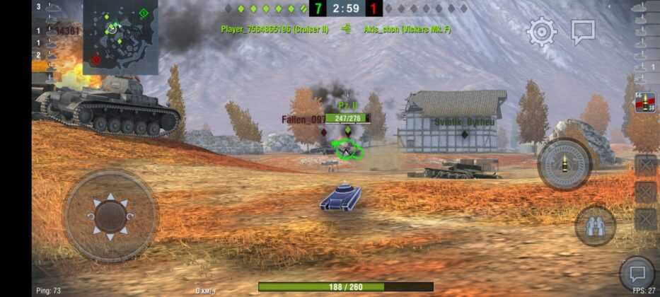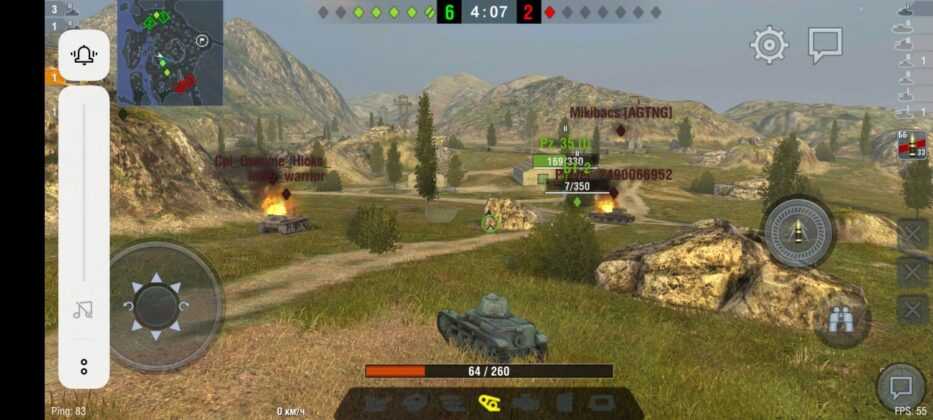 Подтвердились данные теста на троттлинг и уже в практических тестах. Через 2 часа игры в World of Tanks: Blitz на максимальных настройках с включенными сглаживаниями и всеми остальными возможными опциями, был выявлен главный недостаток смартфона как игрового девайса. В начале игровой сессии, или во время того, как противники находятся далеко – FPS застывает на уровне 60. Но вот только стоит оказаться в центре “жаркой битвы” с несколькими противниками и тут уже заметна просадка FPS (даже 11-20 FPS можно увидеть без проблем, но в среднем 30-40), появляются фризы и играть становится неприятно. Проходит время, все настраивается, мы видим стабильные 60 FPS даже в активном бою, а в следующий раз снова падение и так по кругу.